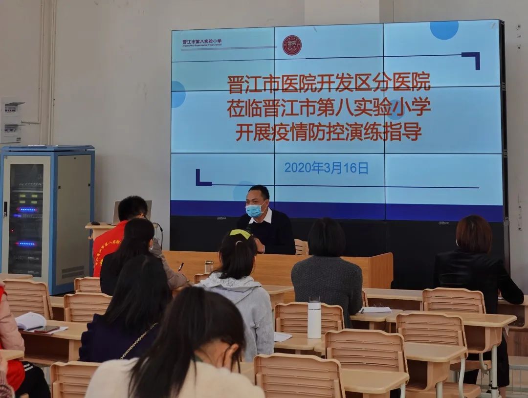 为此,经济开发区院区主动与学校对接帮扶,入校开展疫情常态化防控指导工作和实地演练,先后到第八实验幼儿园、第八实验小学、紫华中学等学校开展防疫讲座。