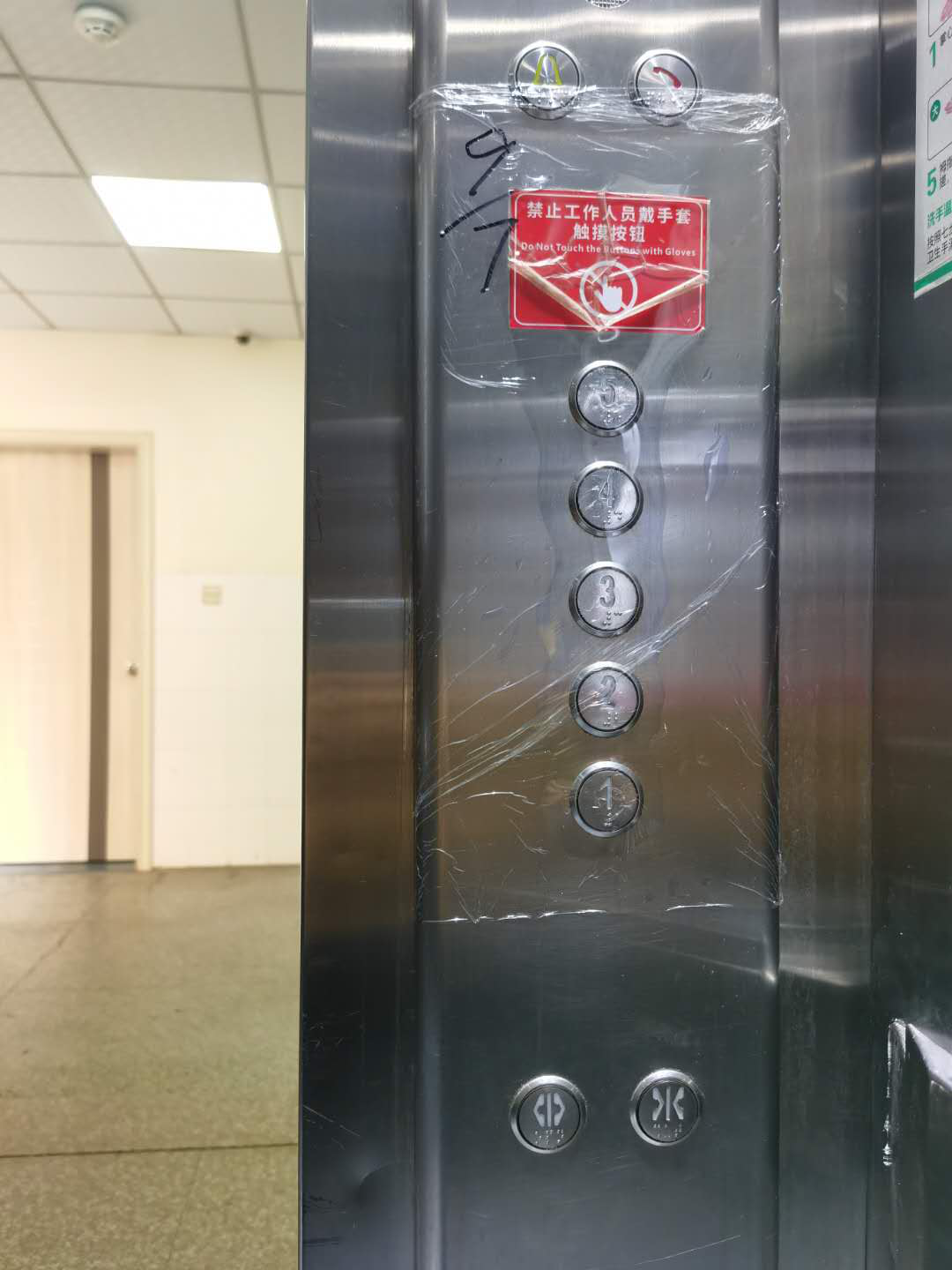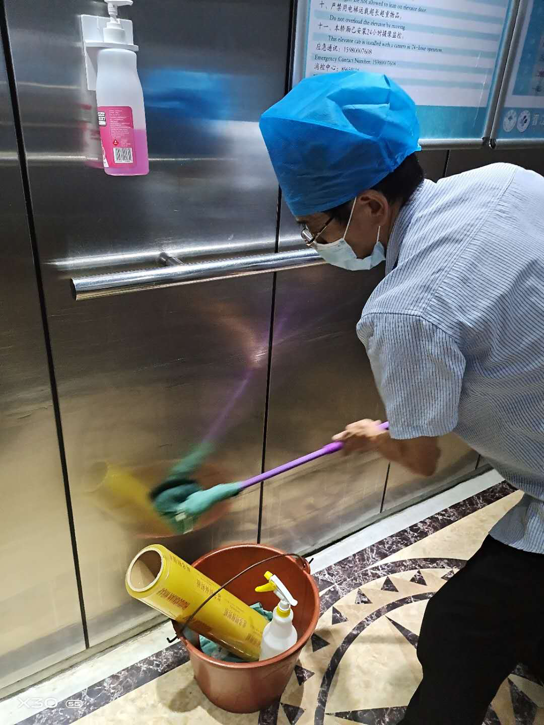 ♦ 按时使用1000mg/L含氯消毒液擦拭院内所有电梯的轿厢、地面;