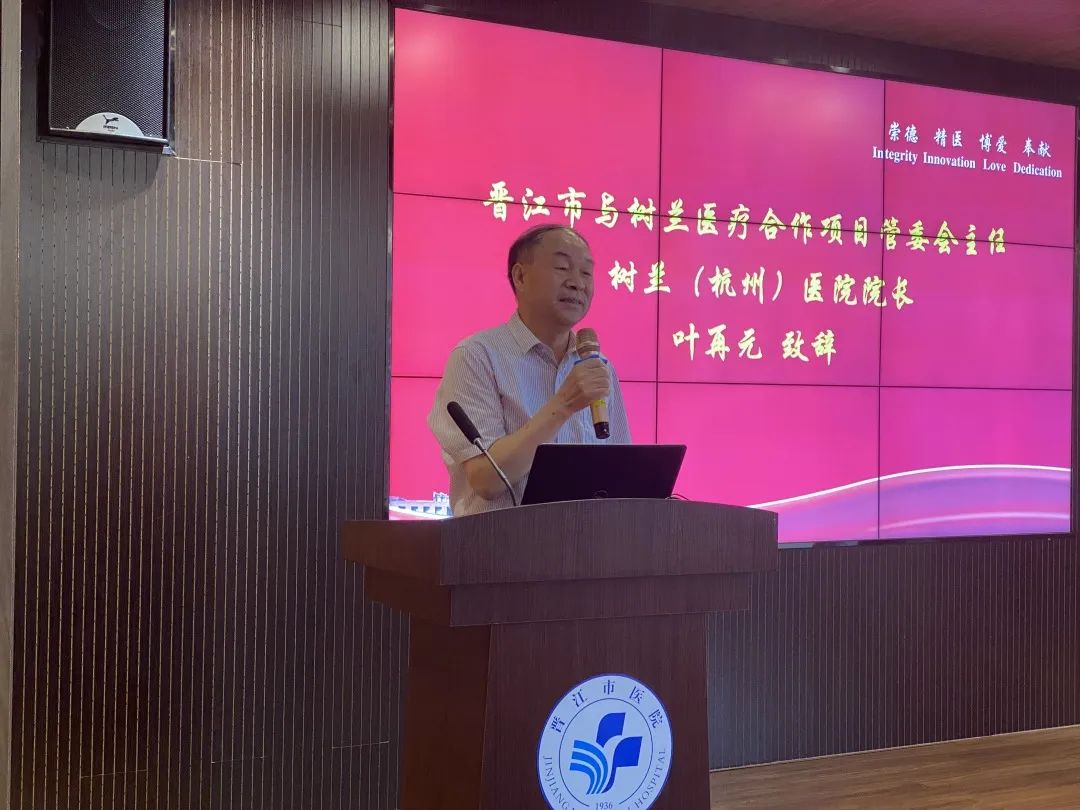 ▲ 晋江市与树兰医疗合作项目管委会主任、树兰(杭州)医院院长叶再元致辞