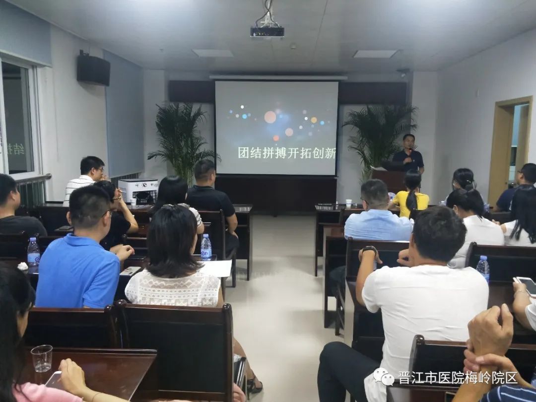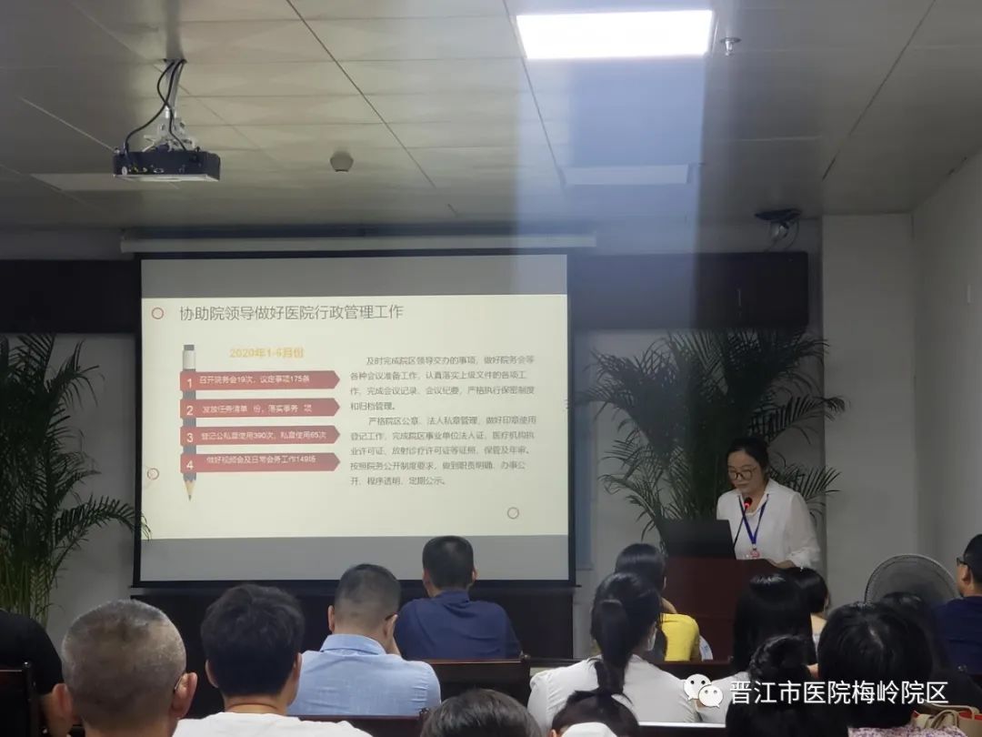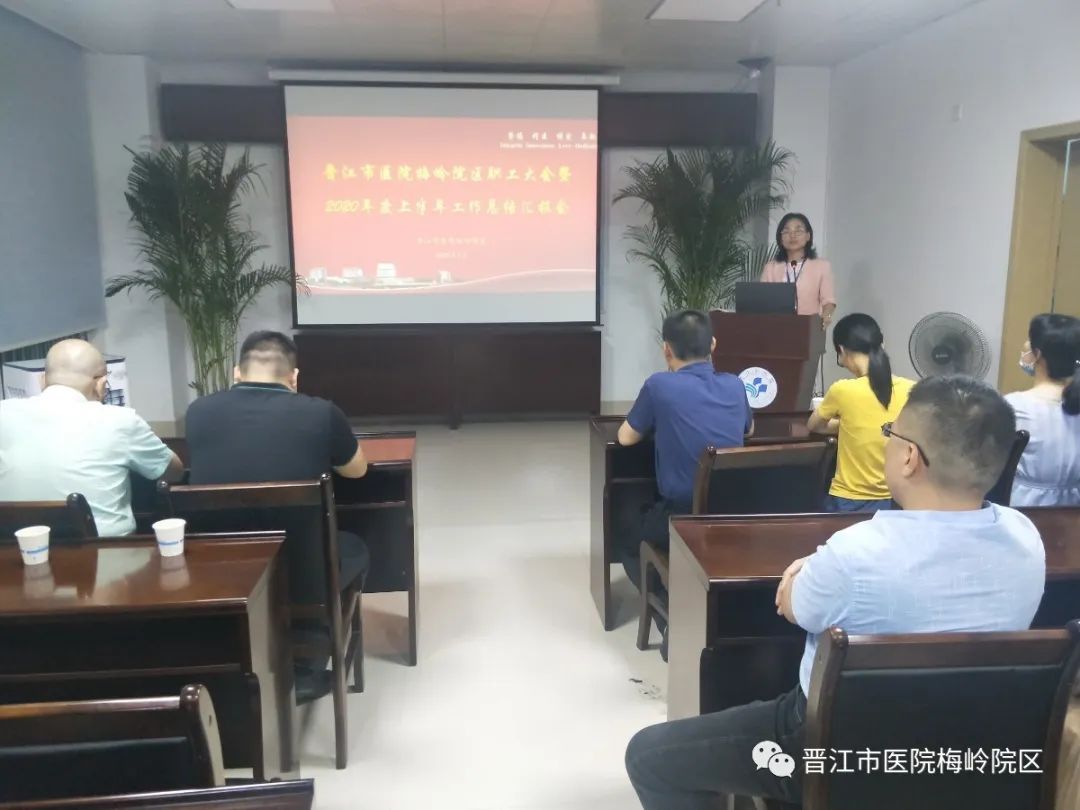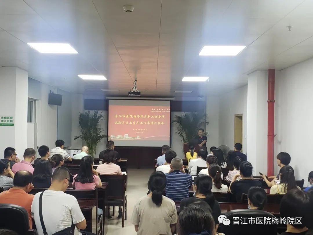 7月23日晚上,晋江市医院梅岭院区五楼会议室人潮涌动,“梅岭院区职工大会暨2020年上半年工作总结汇报会”在这里召开,我院本部行政科室负责人、梅岭院区全体干部职工参加本次会议。梅岭院区副主任詹曼艺主持会议。