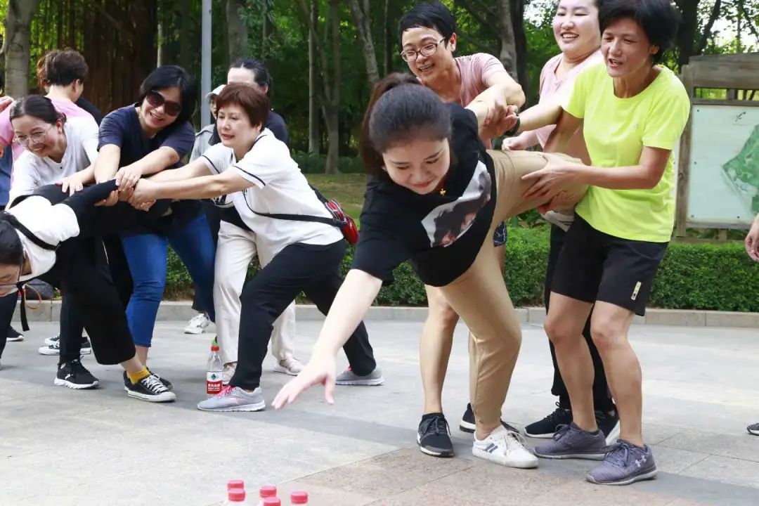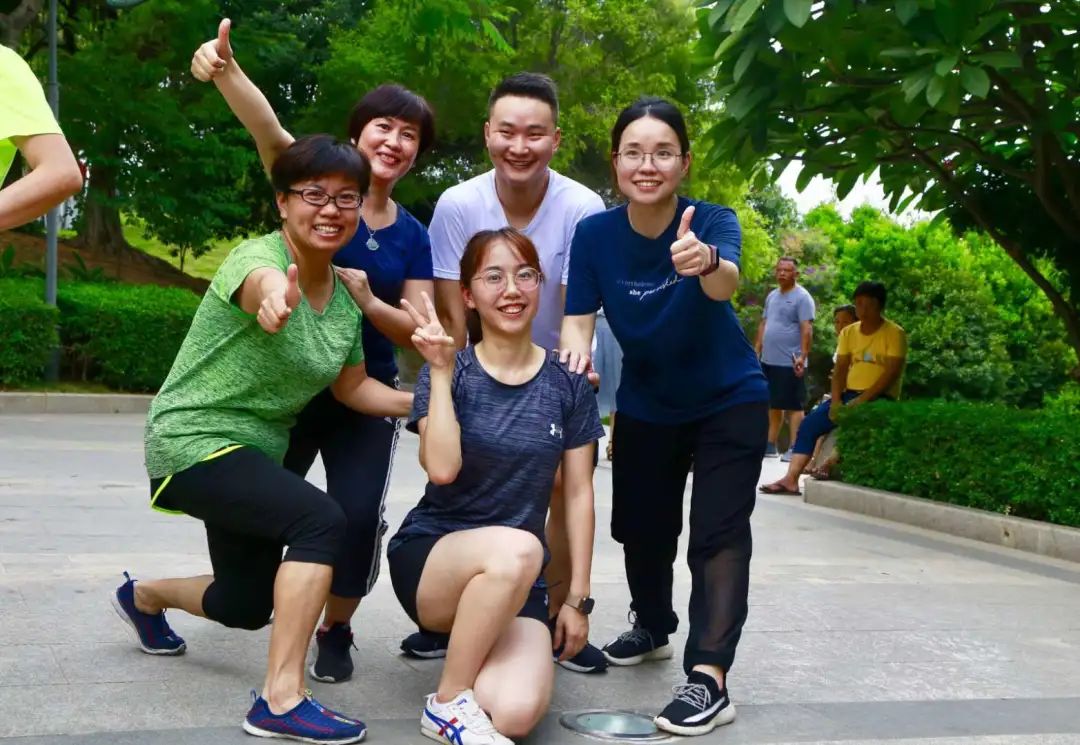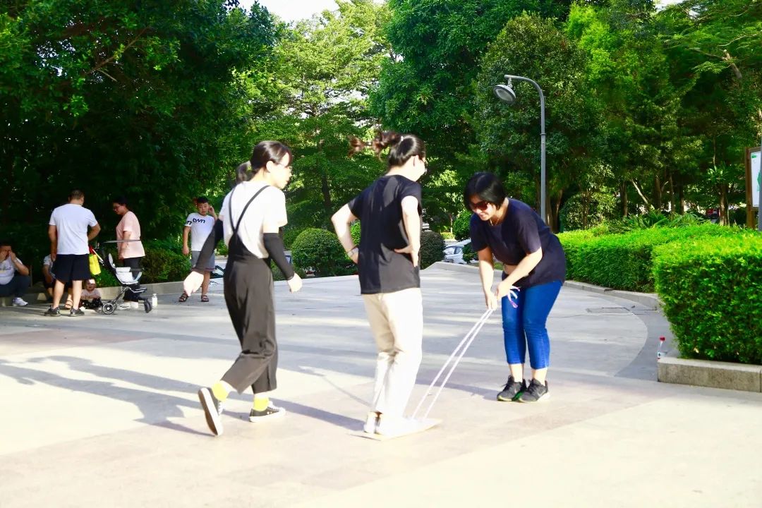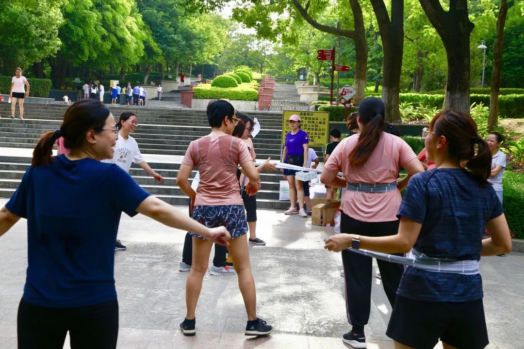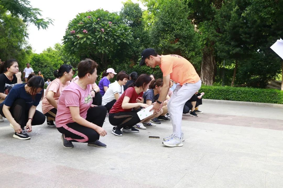 原来,晋江市医院第二期健康管理活动成员在这里举行户外活动。为期90天的健康管理活动,他们已经连续进行了45天。每天的有氧训练、抗阻训练已成为他们的运动习惯,他们的身上散发出更多的阳光快乐气息。这一天他们通过趣味运动的比赛形式,将体育运动中的体力、耐力、柔韧性、敏捷性充分展现出来,同时与团队协作有机结合起来,对这一期健康管理活动进行“中期考核 ”。
