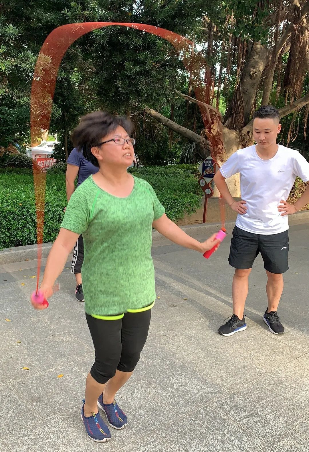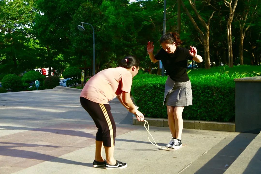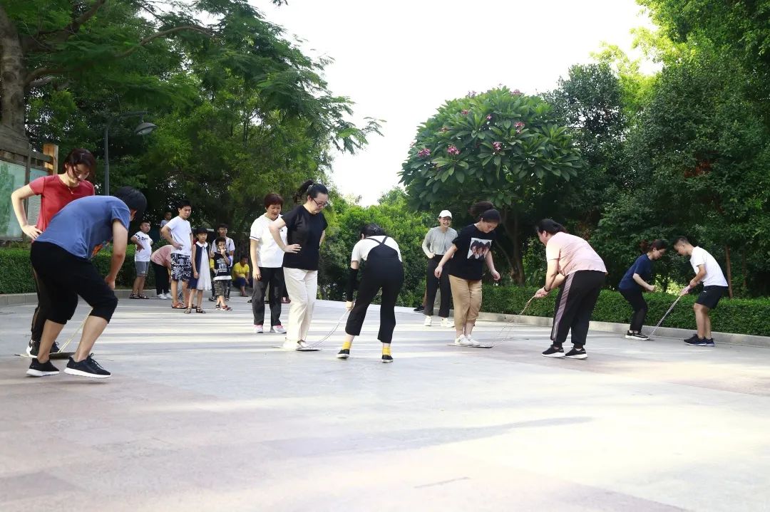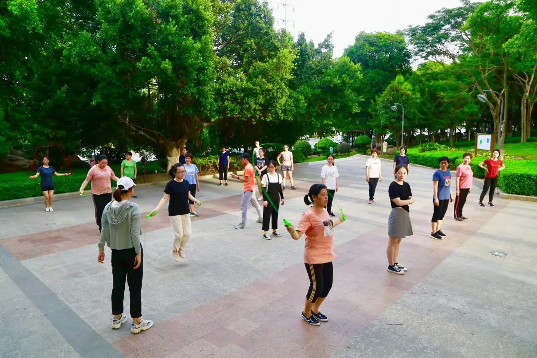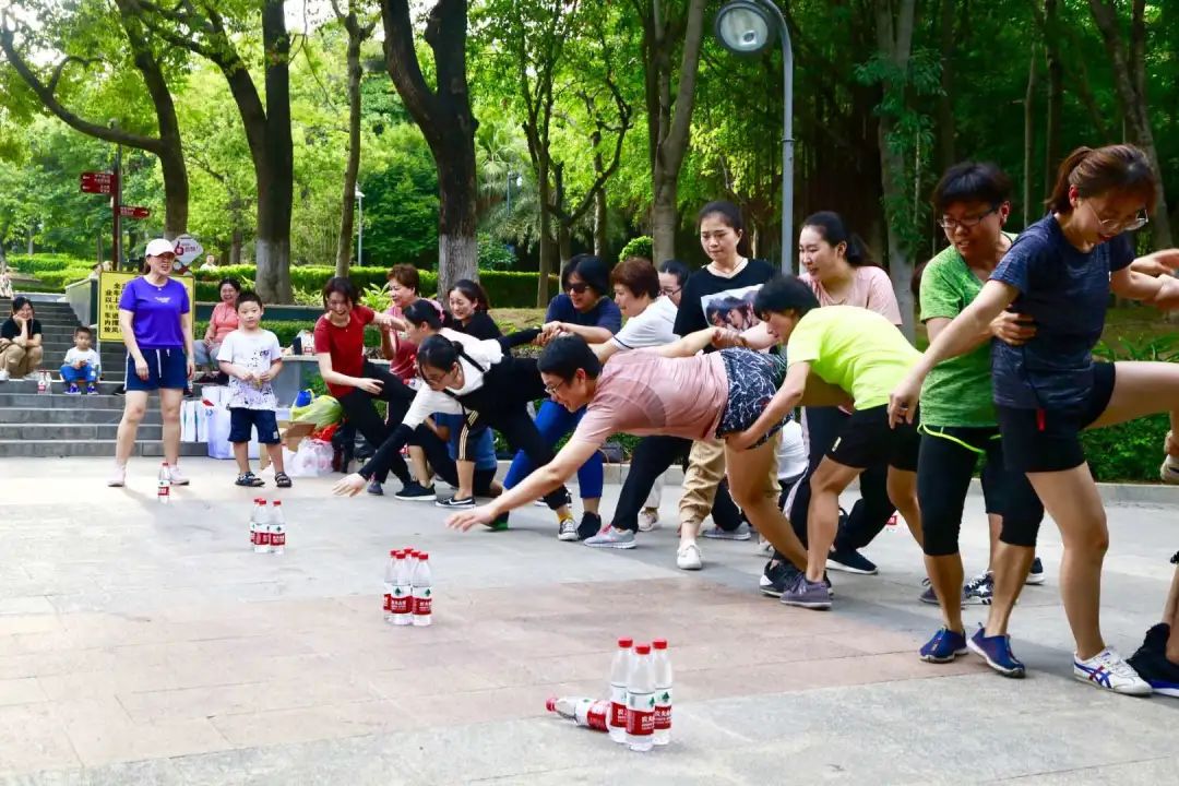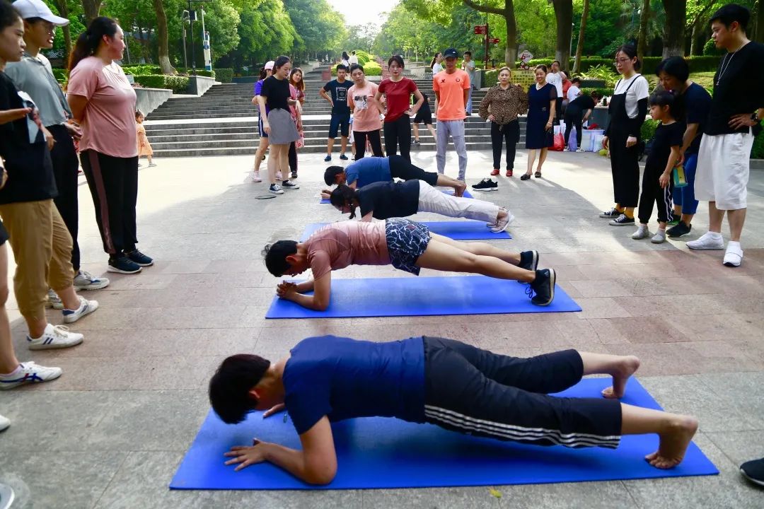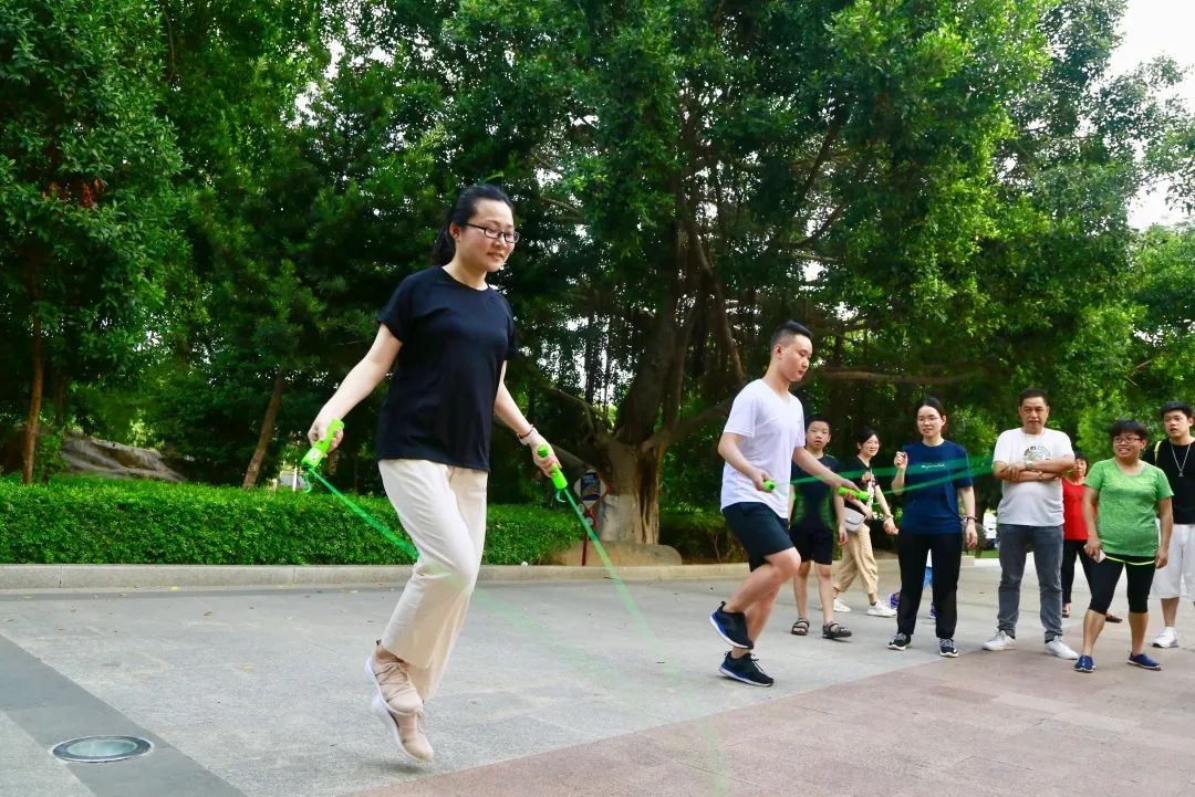 活动由“美少女战队”每日必练的batata启动热身运动,比赛开始后,“魔力转圈”“群龙取水”“平板支撑”“跳绳拉力”“121跳跳”轮番上场,场场气氛爆棚。