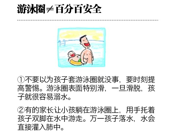 9、带孩子出去游泳时,家长也应留心泳池周边安全,一定要看护好。