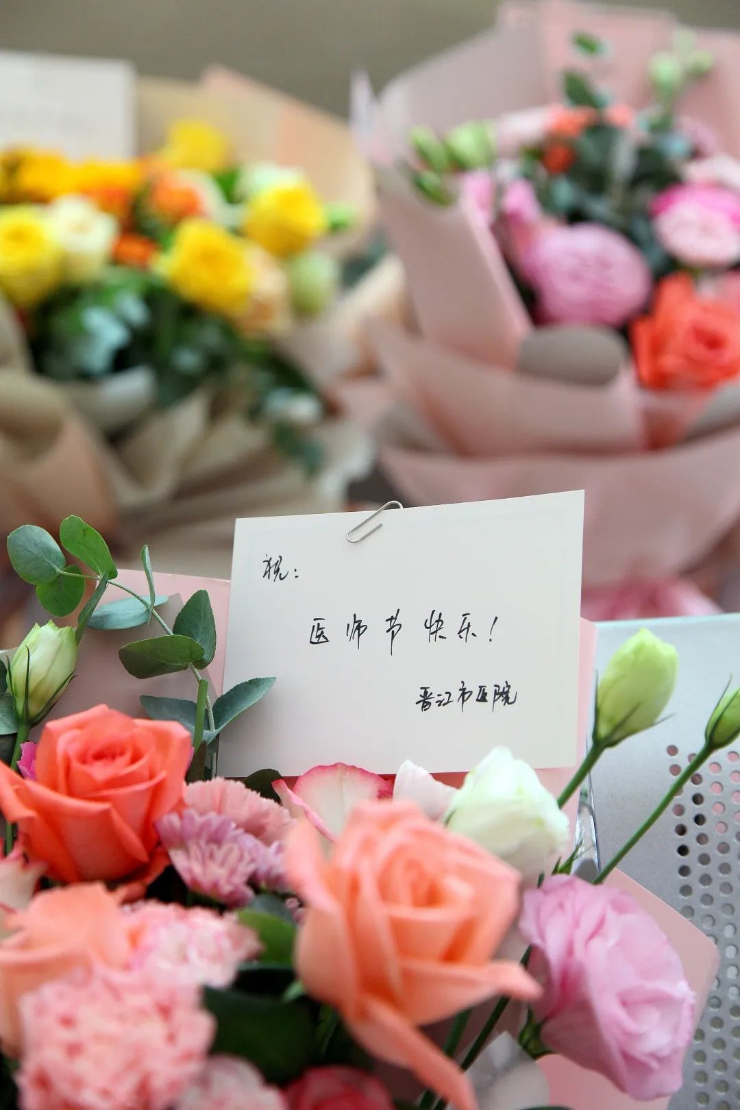 今天,是第三个中国医师节,为更好地营造节日氛围,上午,晋江市医院陈铭院长、黄东昭书记、郭协力副院长、刘其聪副院长、陈名智副院长、张金山副院长、林友榆副书记,院长助理、梅岭院区主任王毅,汪德宁总会计师,在相关科室负责人的陪同下慰问了我院各科室及晋南分院、开发区院区、梅岭院区坚守一线的敬业“晋医医师们”,为他们送去节日的祝福和暖心礼物、鲜花和蛋糕。