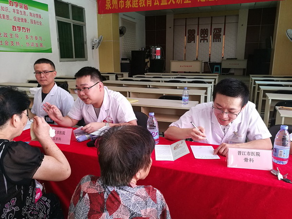为深入学习贯彻落实全国卫生与健康大会精神,我院于9月12日组织骨科、五官科、内分泌科、药剂科等4名业务骨干,联合福建医科大学附属第二医院普外科、医学影像科2名专家,一同前往安海镇老年学校共同开展“服务百姓健康行动”义诊活动。