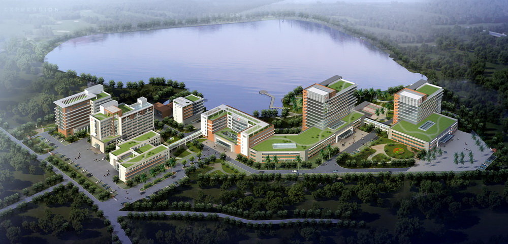 晋医风采 - 一(4)晋南分院鸟瞰图(有湖)