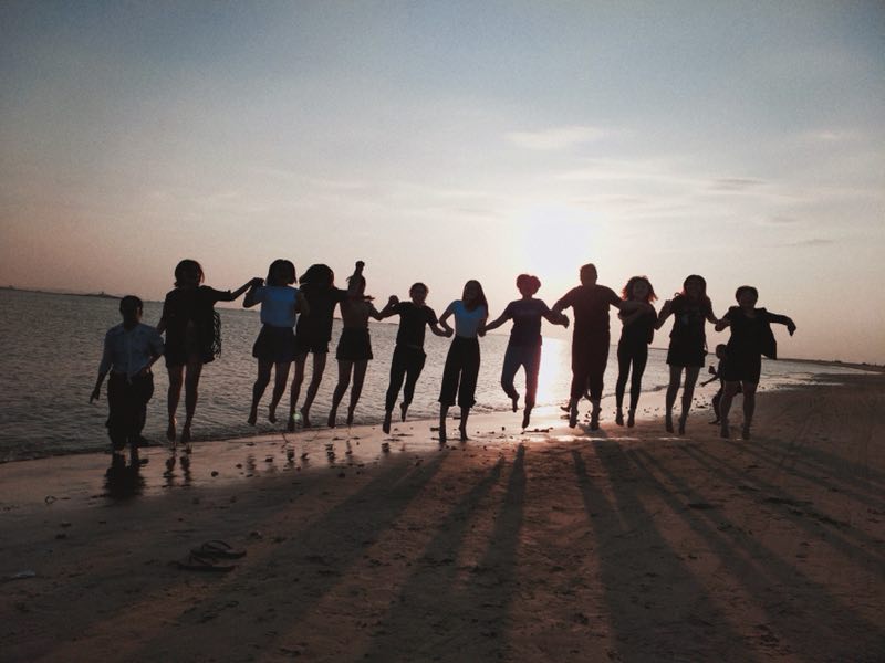 抓住这最后一道霞光,沙滩上上演着海边撕名牌。刚开始大家不停护着自己背后的名牌,小心翼翼,不知谁喊了一声:“大家,快上,先撕主任,快!!!”激烈的战斗展开了,主任寡不敌众,果然几个回合下来,主任out。撕、拉、扯、绕、偷袭,说好的同事爱呢?(偷笑)在欢声笑语中,伴随着最后一丝余晖地洒尽,我们结束了海边之旅。